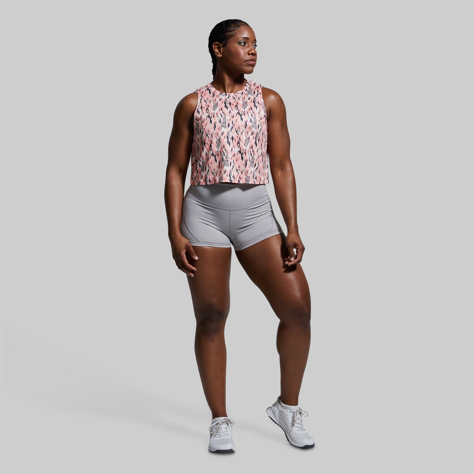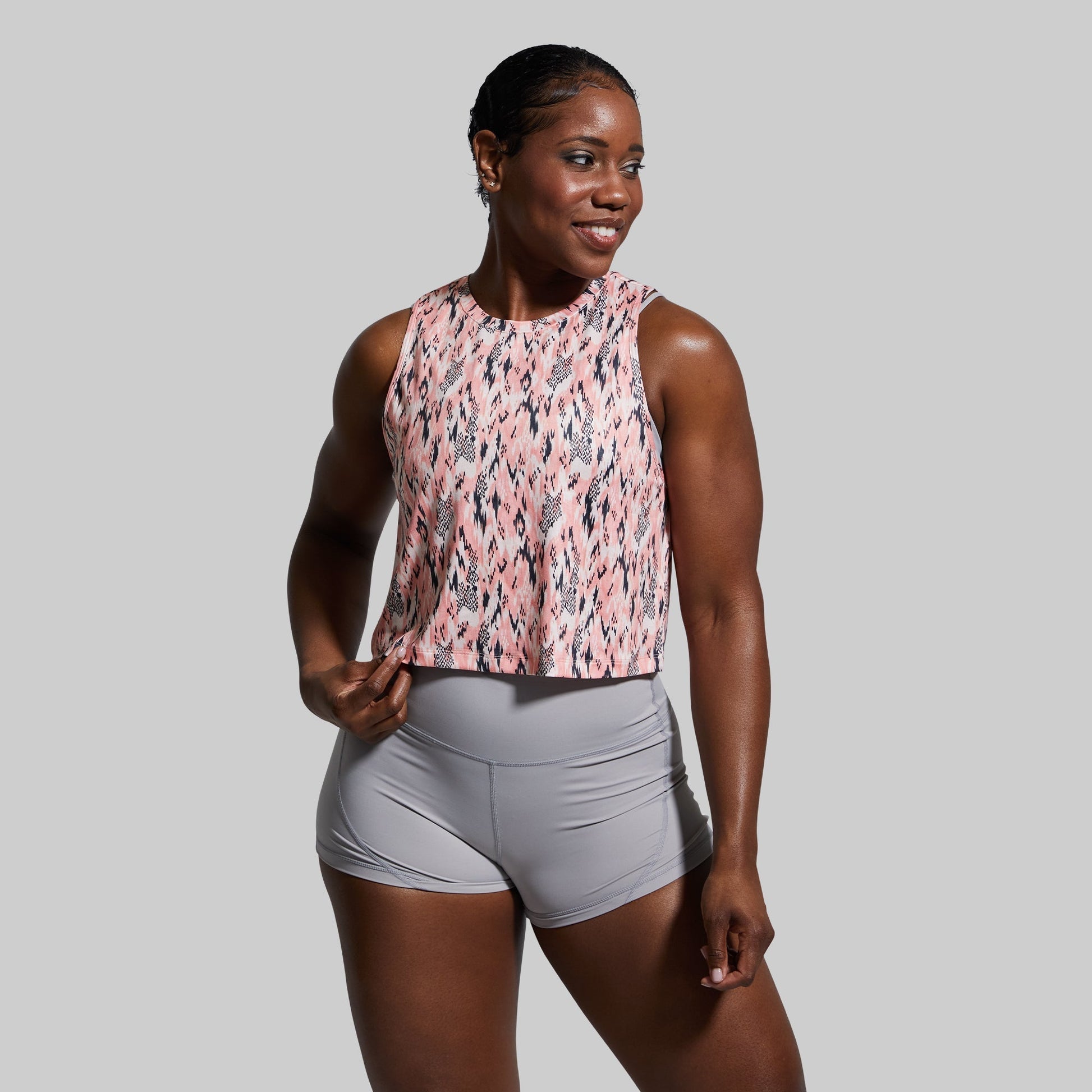 - Muscle tank cut with a flattering cropped fit